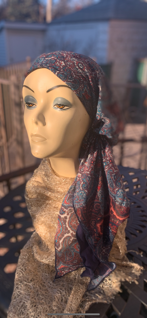 Beautiful Pre Tied Hair Scarf | Sophisticated Design | Lightweight Headscarf With Comfy Navy Blue Lining Made in America By Uptown Girl Headwear