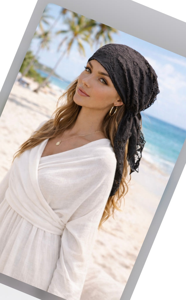 Black Lace Pre Tied Head Scarf | Fashion Lace Headscarf For Women | Black Modern Hijab | Proudly Made in the USA by Uptown Girl Headwear